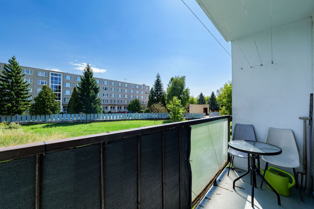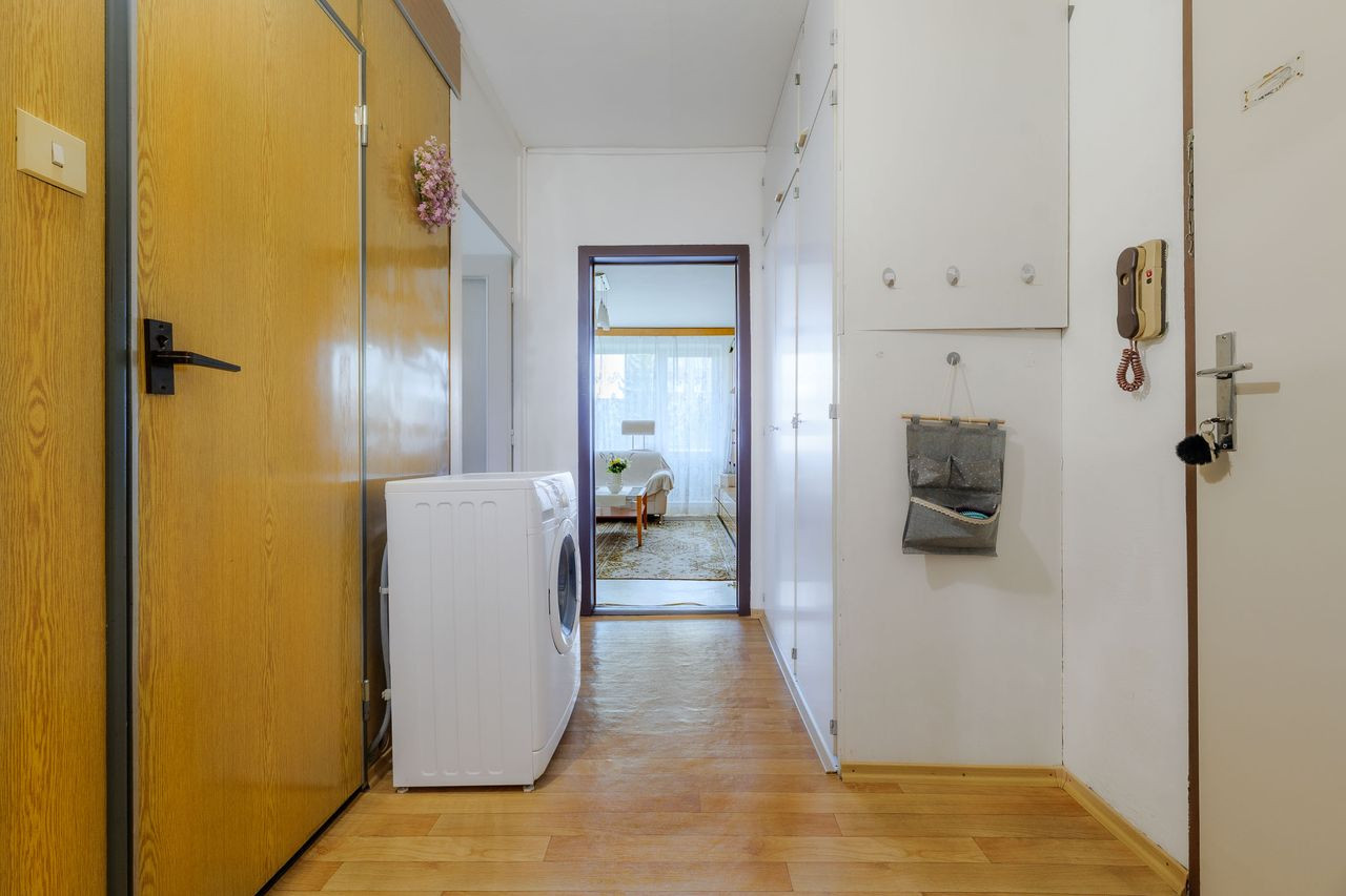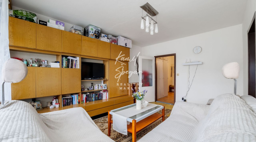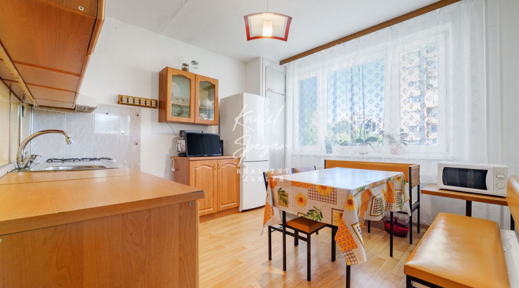 Byt má 56 m² + loggia (4 m²) a nachádza sa na vyvýšenom prízemí. K bytu patrí aj pivnica, takže úložného priestoru je dosť. V bytovom dome je nový výťah a celý blok je zateplený.
