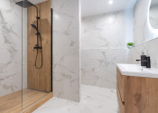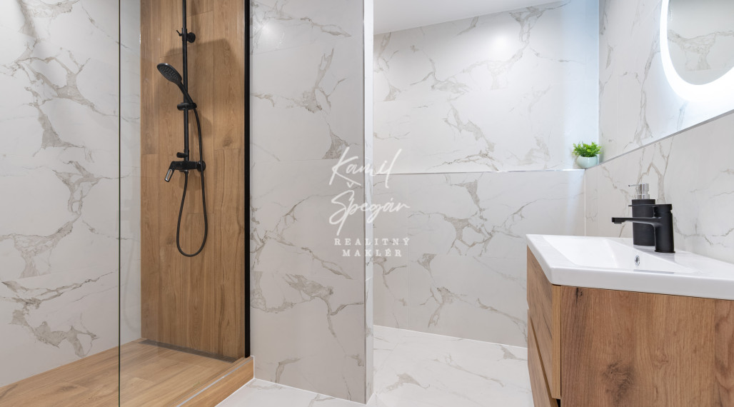 Kompletná rekonštrukcia zahŕňa novú elektroinštaláciu v celom byte, rozvody vody a kúrenia, murované jadro, sadrové omietky pre moderný vzhľad interiéru, laminátové plávajúce podlahy, bezpečnostné oceľové dvere pre maximálnu ochranu, nové radiátory, obložkové zárubne a interiérové dvere, sadrokartónové stropy, ako aj moderné dlažby a obklady v kúpeľni.