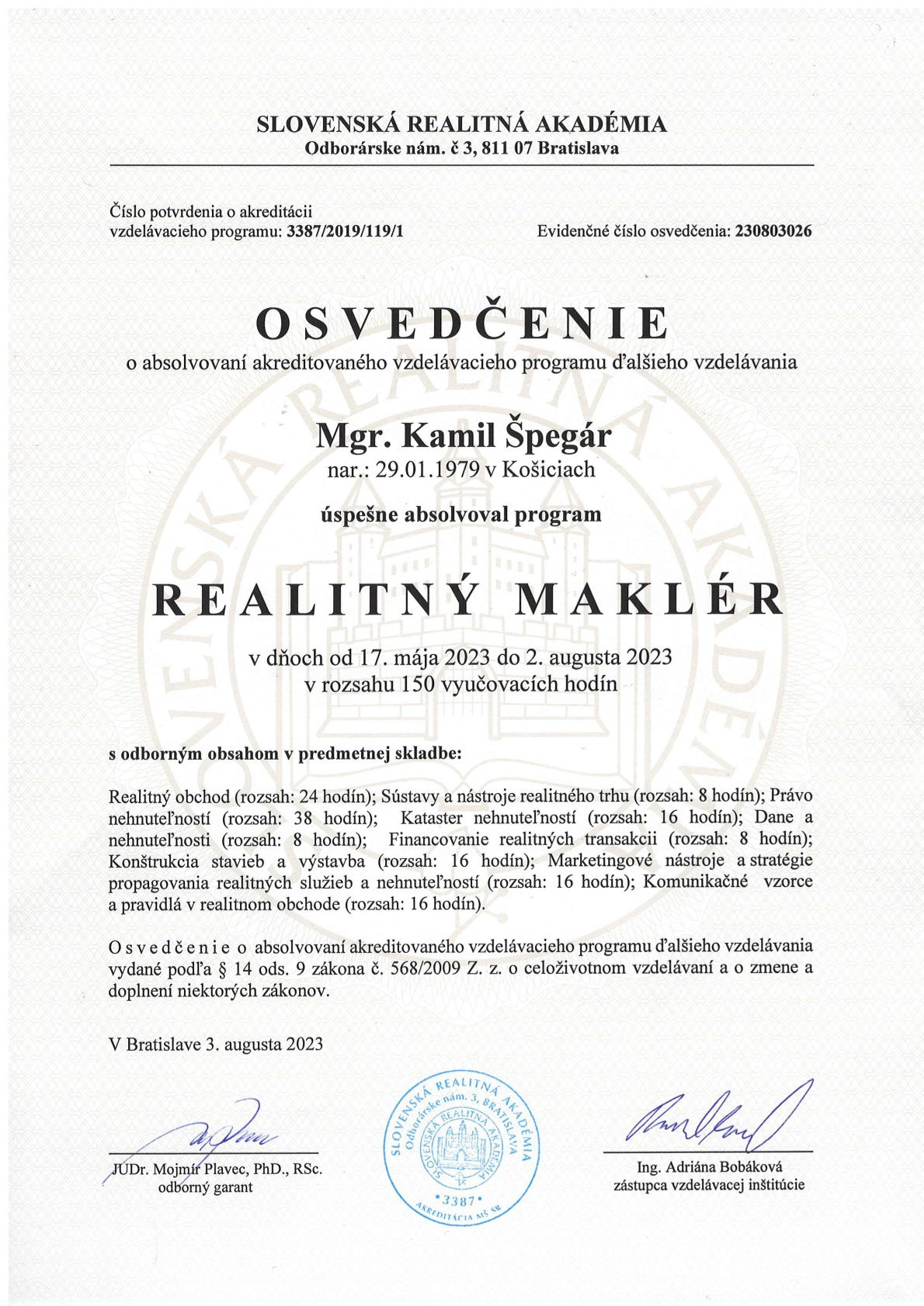 Volám sa Kamil Špegár a takmer desať rokov pomáham ľuďom nachádzať ich nové domovy, investície a príležitosti. Ako realitný maklér som za ten čas sprostredkoval stovky úspešných obchodov – od predaja bytov a domov, cez prenájmy až po výstavbu a financovanie nehnuteľností.